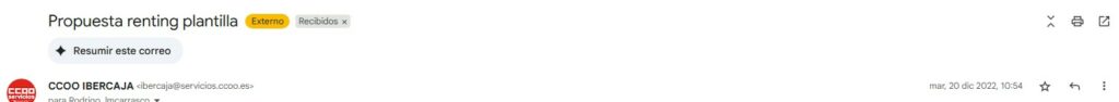 Diciembre de 2022. Unos intrépidos sindicalistas de CCOO realizan una propuesta trabajada durante meses sobre renting para la Plantilla, a la Dirección del Área de Personas y a la Dirección del Grupo Financiero.