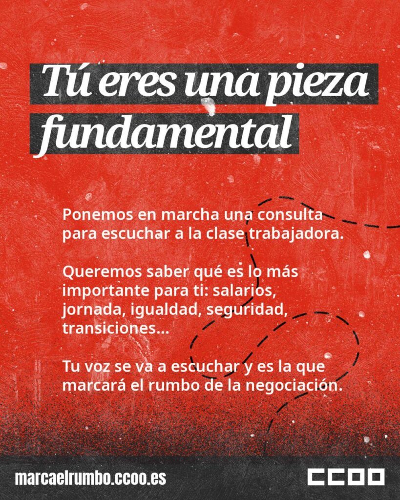 Compañeras y compañeros, desde CCOO hemos puesto en marcha una consulta importante para decidir juntos cómo queremos que avance nuestro futuro laboral.
